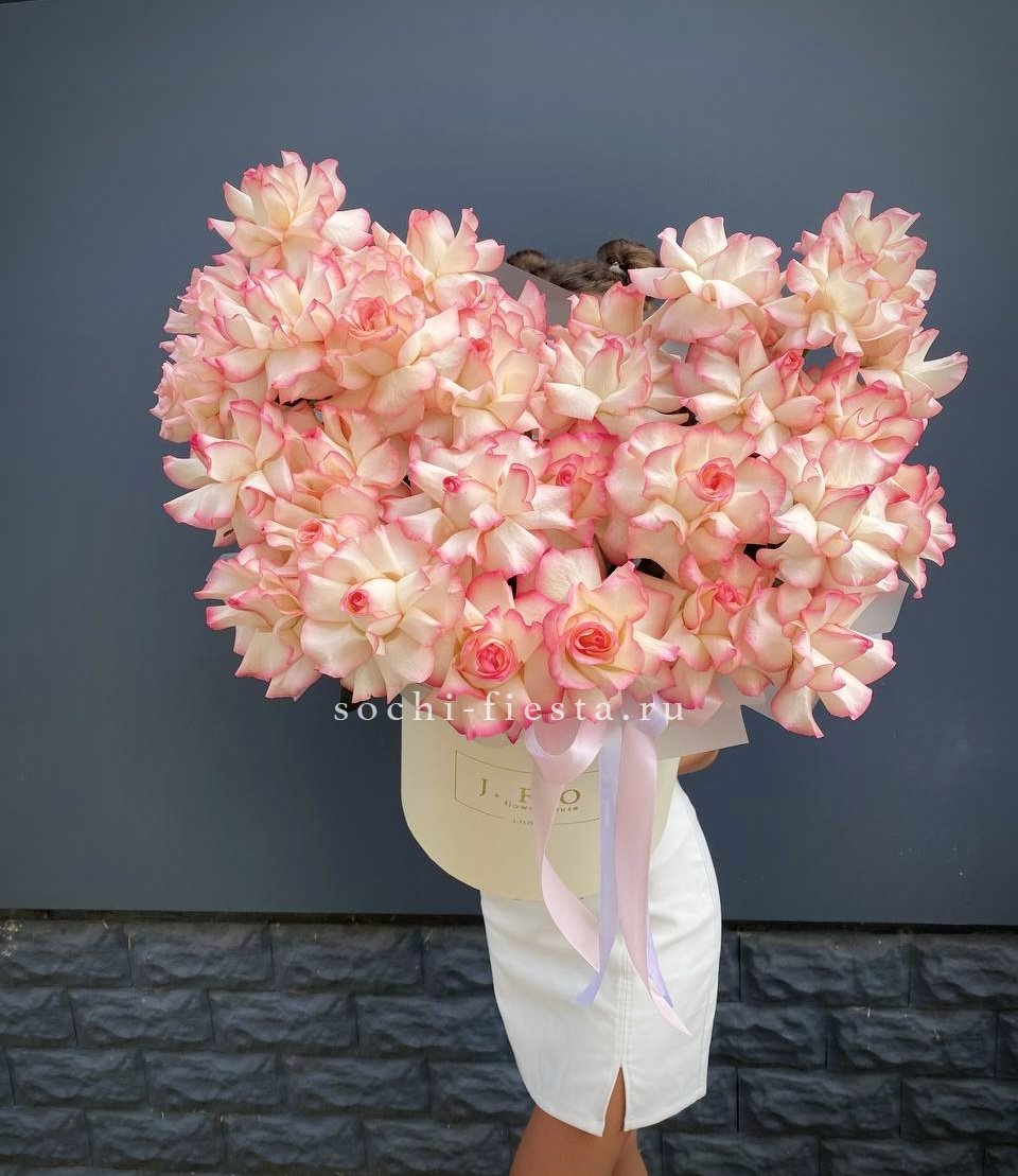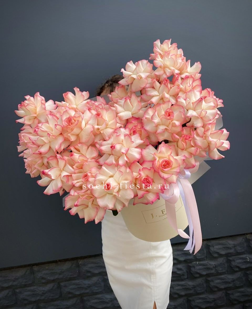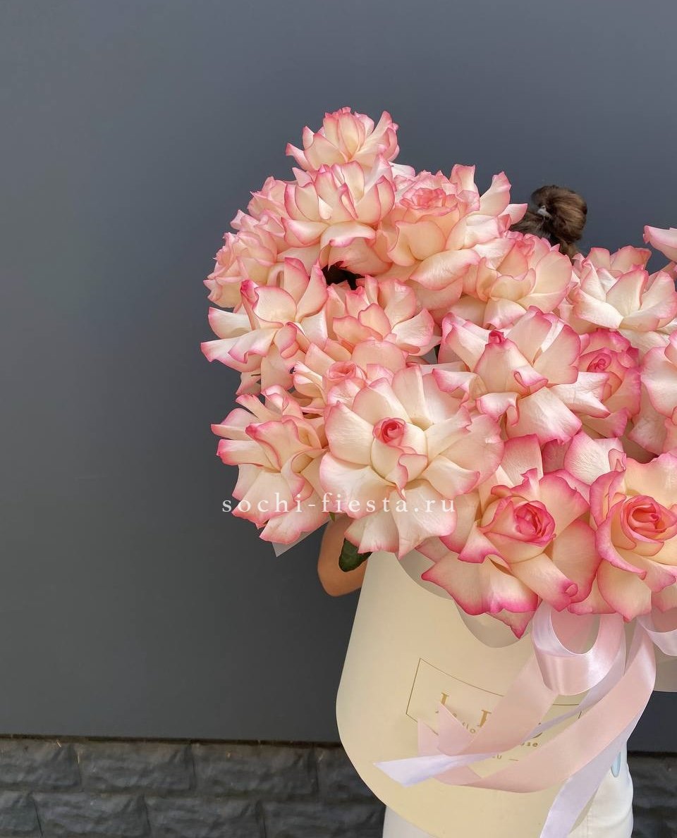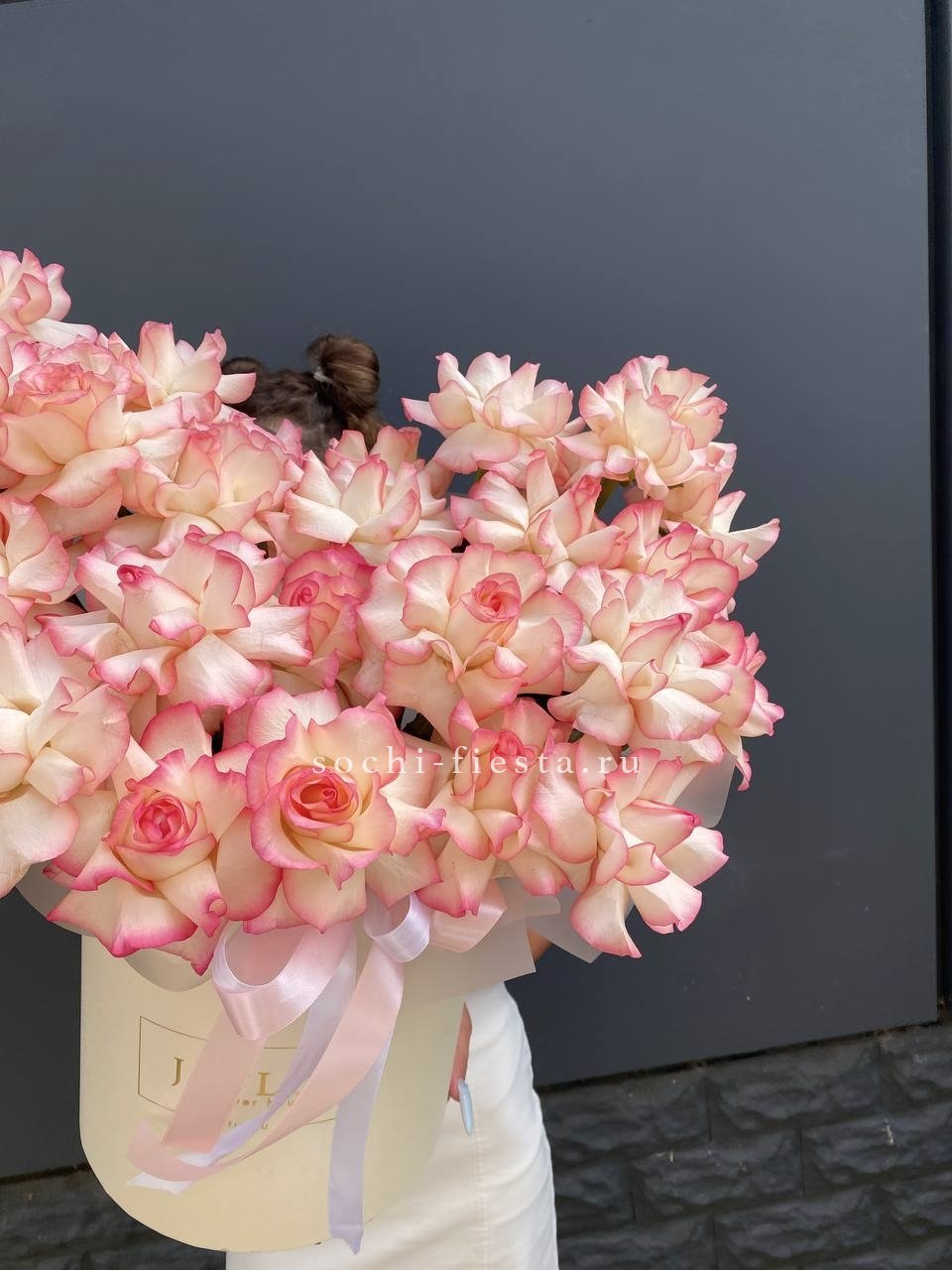 Для заказа товара "31 французская роза Джумилия в боксе" с доставкой в Мурманске нажмите в корзину