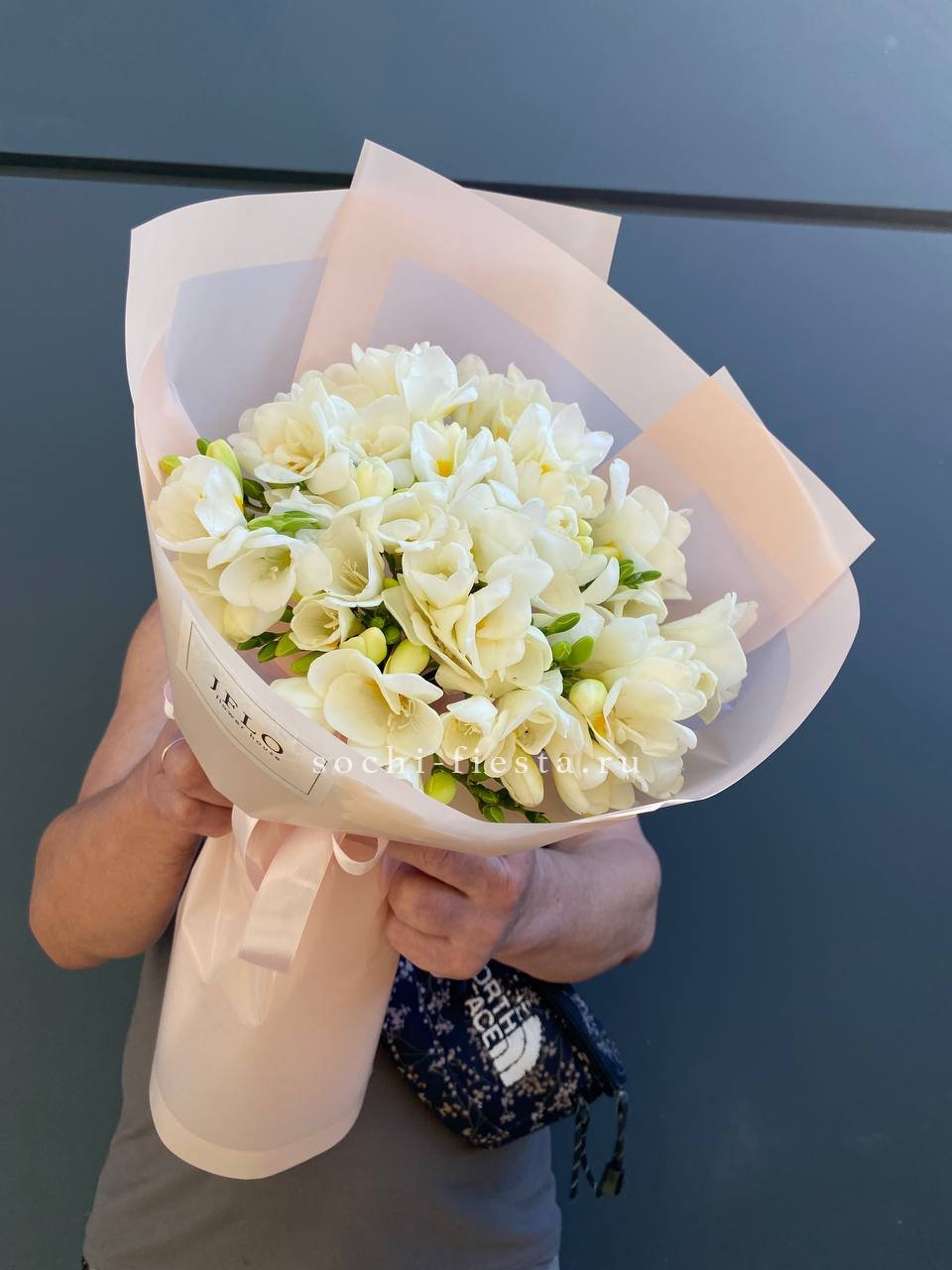Мы работаем только со свежими цветами — букеты радуют от 7 до 14 дней и дольше при правильном уходе.