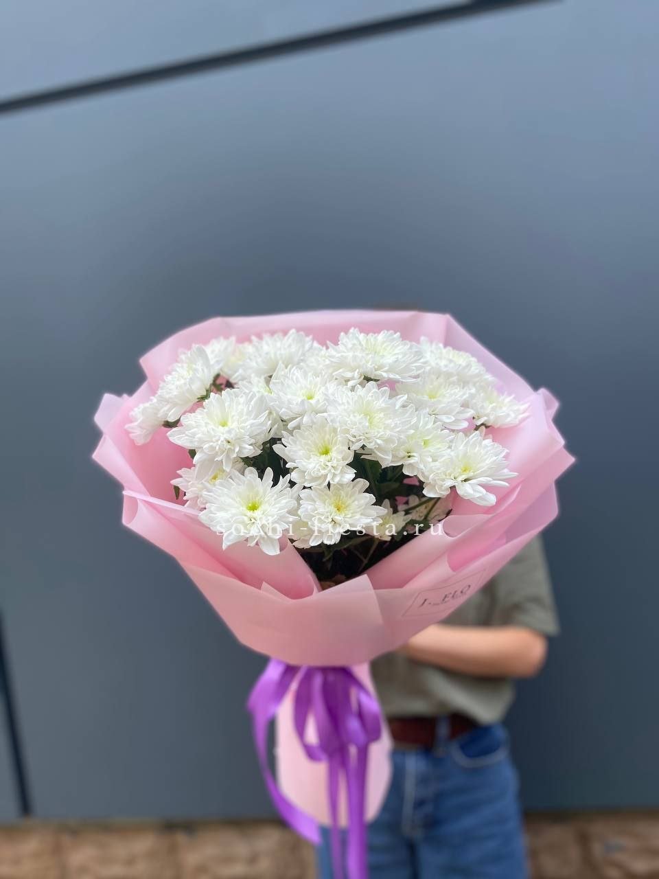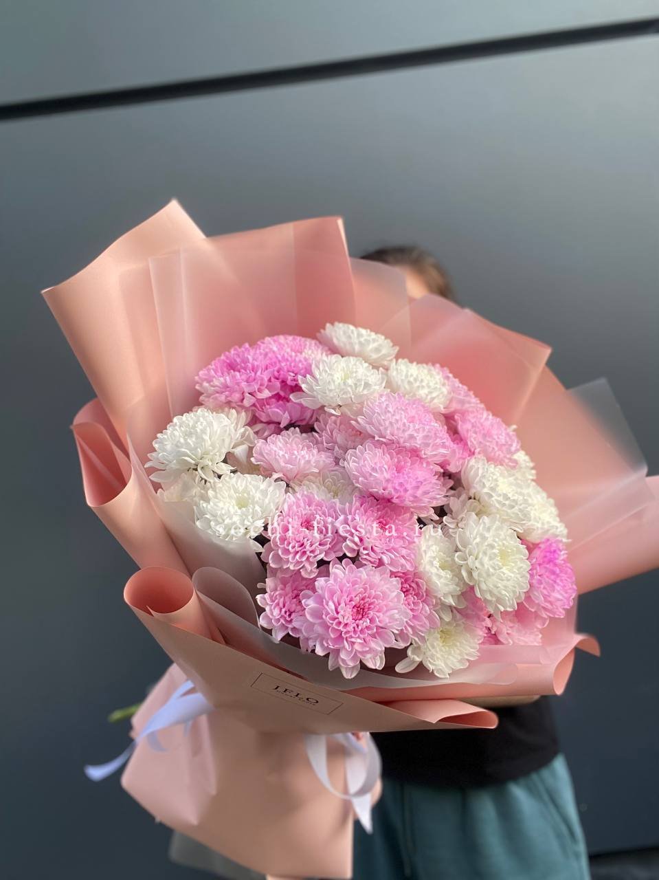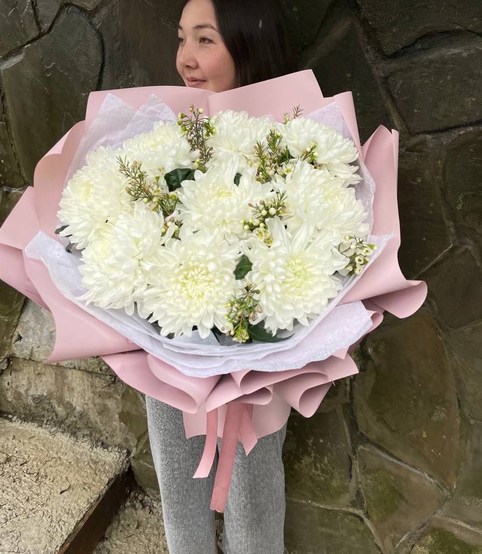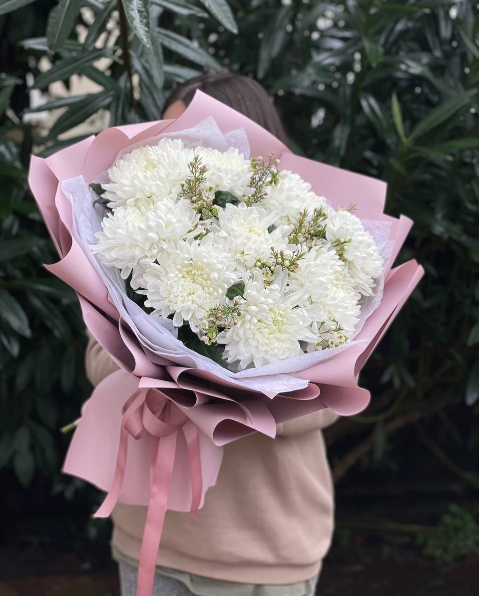 Букет бело-розовых хризантем