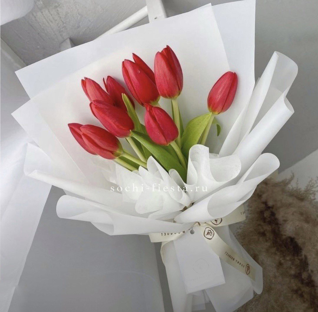 101 белый тюльпан, лента, крафт или дизайнерская пленка.