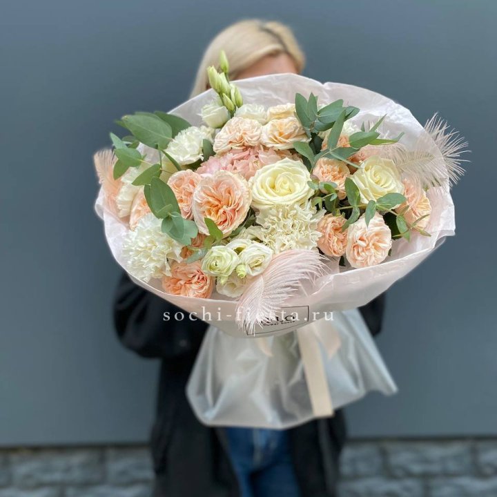 - Редкий состав — David Austin, ранункулюс, анемоны, сезонные пионы.