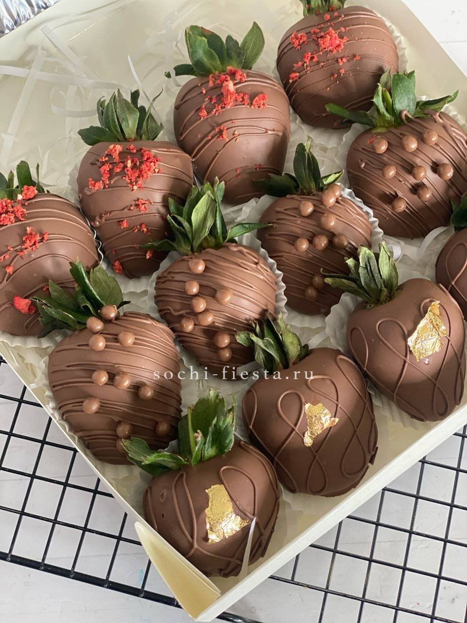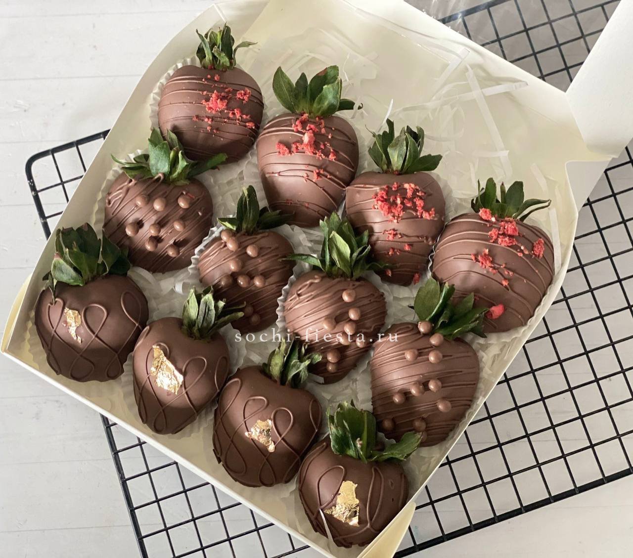 300-400г. ароматной клубники, розы- 9шт., лента, оформление.