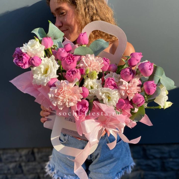 Размер выбирается по повод. Коллеге в Мурманске — M или L. Юбилей родителей — XL. Выписка из роддома — L в пудровой палитре. Корпоративный юбилей — XXL. Романтический подарок — M или L в яркой палитре.