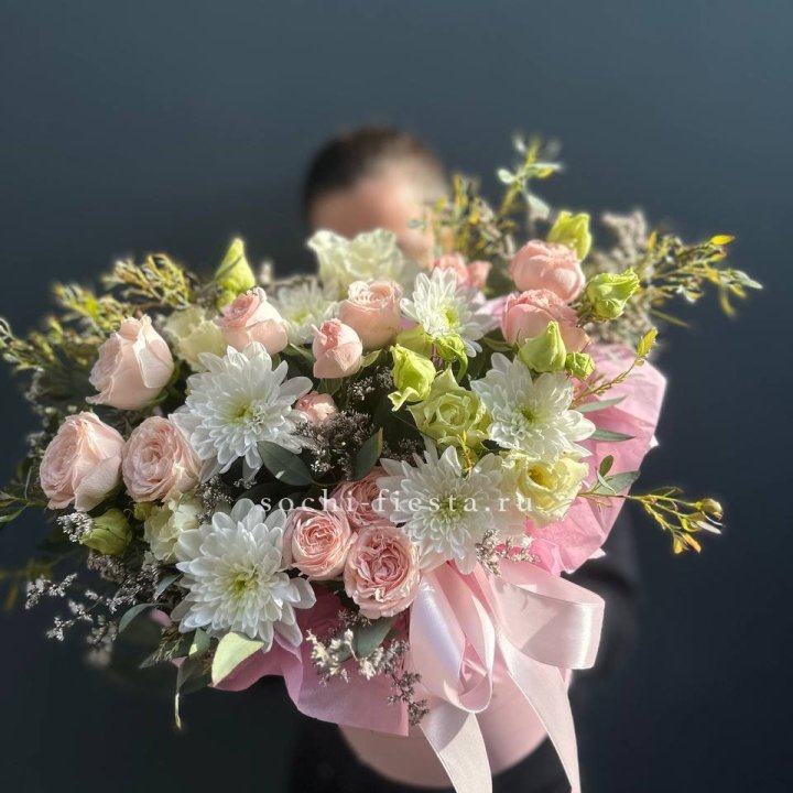 Семейные праздники — юбилеи родителей, выписки из роддома, годовщины. Палитра пудровая или классическая. Размер L или XL. Для пожилых получателей — сдержанные лилии и хризантемы, для молодых — современные авторские миксы.