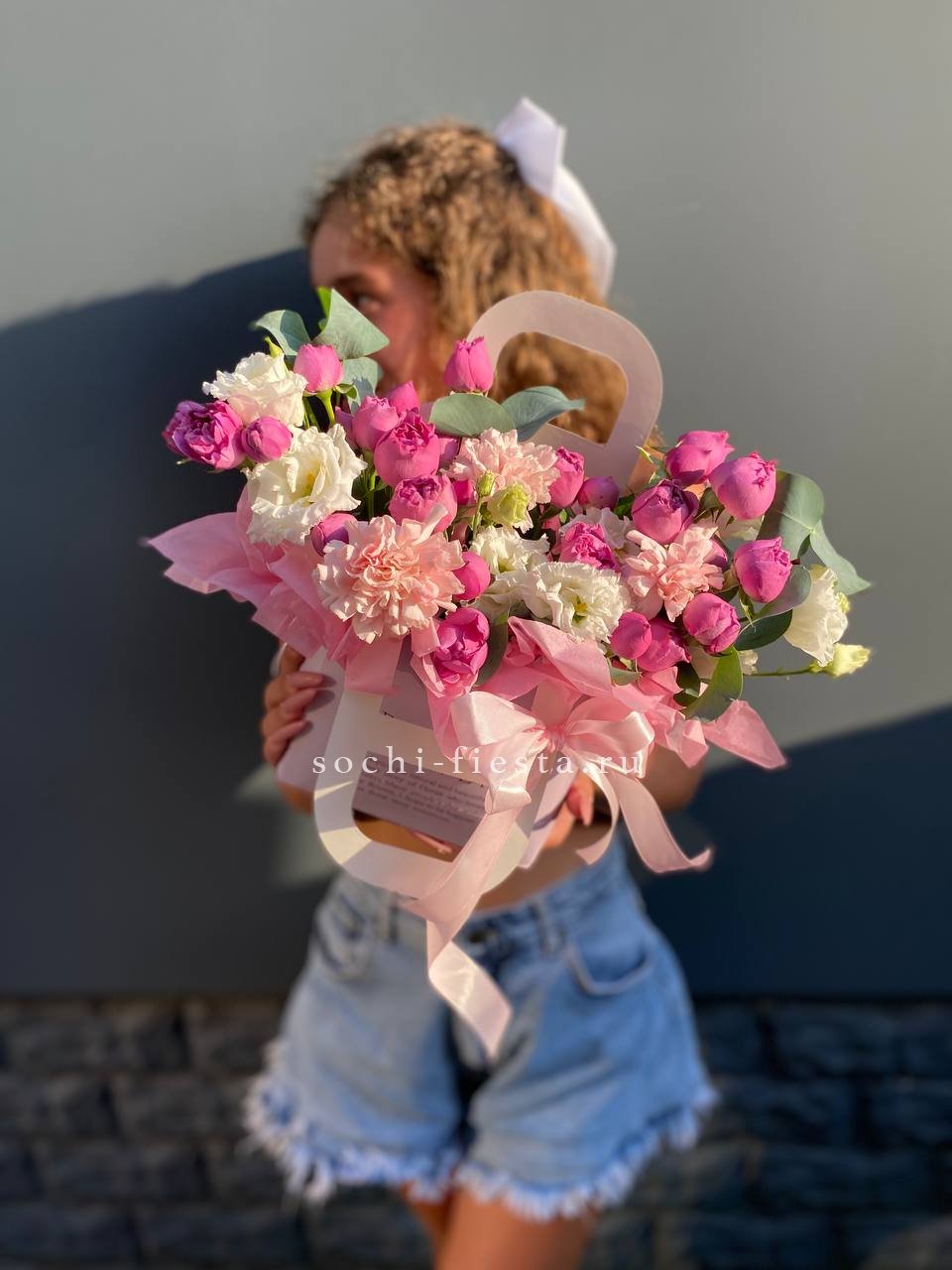 Для заказа товара "Сумочка с кустовой розой и диантусами" с доставкой в Мурманске нажмите в корзину