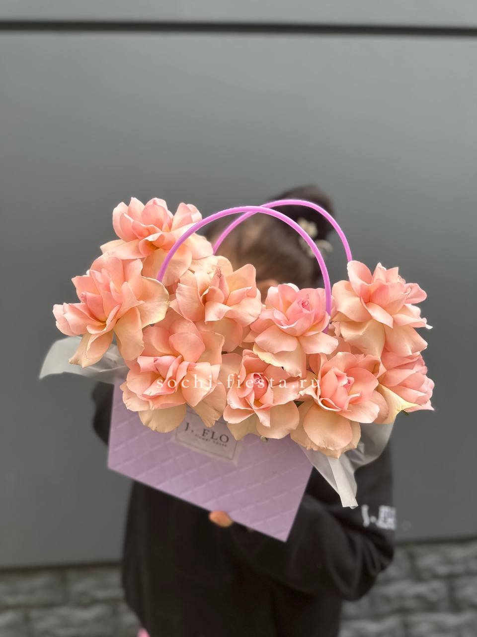 Компактная сумочка Cute с розами занимает мало места и выглядит аккуратно на рабочем столе или тумбочке. Бутоны собраны плотно и держат форму без дополнительной вазы. Простое решение для быстрого знака внимания.