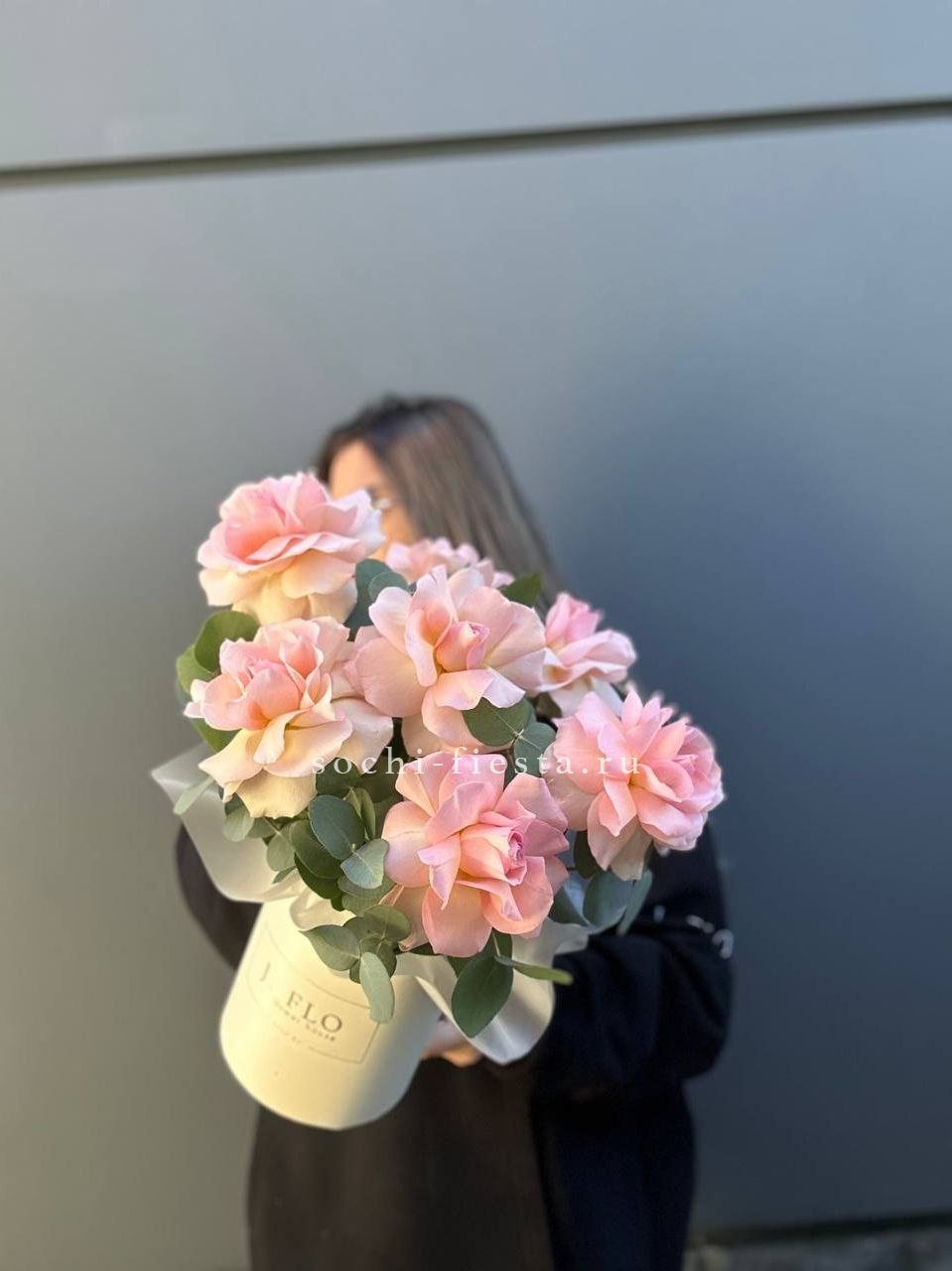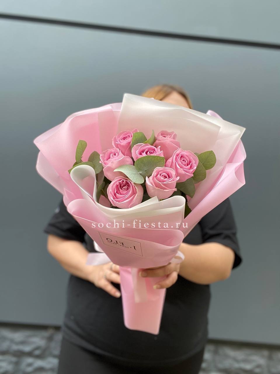 вывернутые розы- 7 шт., цилиндр D13, эвкалипт, лента, упаковка. Данная цена доступна при заказе от 10 шт.