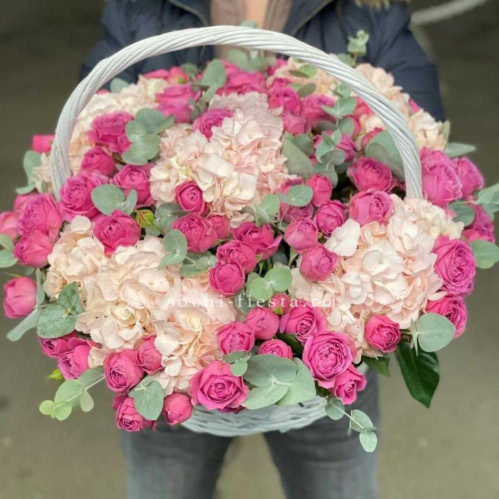 Для заказа товара "Корзина с гортензией и Мисти Баблс" с доставкой в Мурманске нажмите в корзину