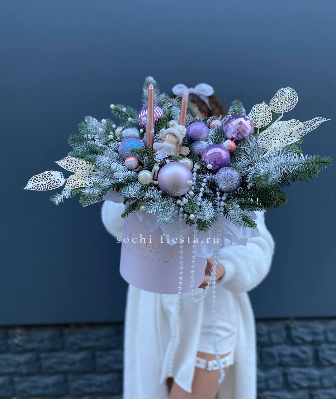 нобилис, цилиндр, оазис, свечи, новогодние игрушки, декор ВНИМАНИЕ! Готовая композиция (декор) может иметь незначительные внешние отличия от примера на фотографии.