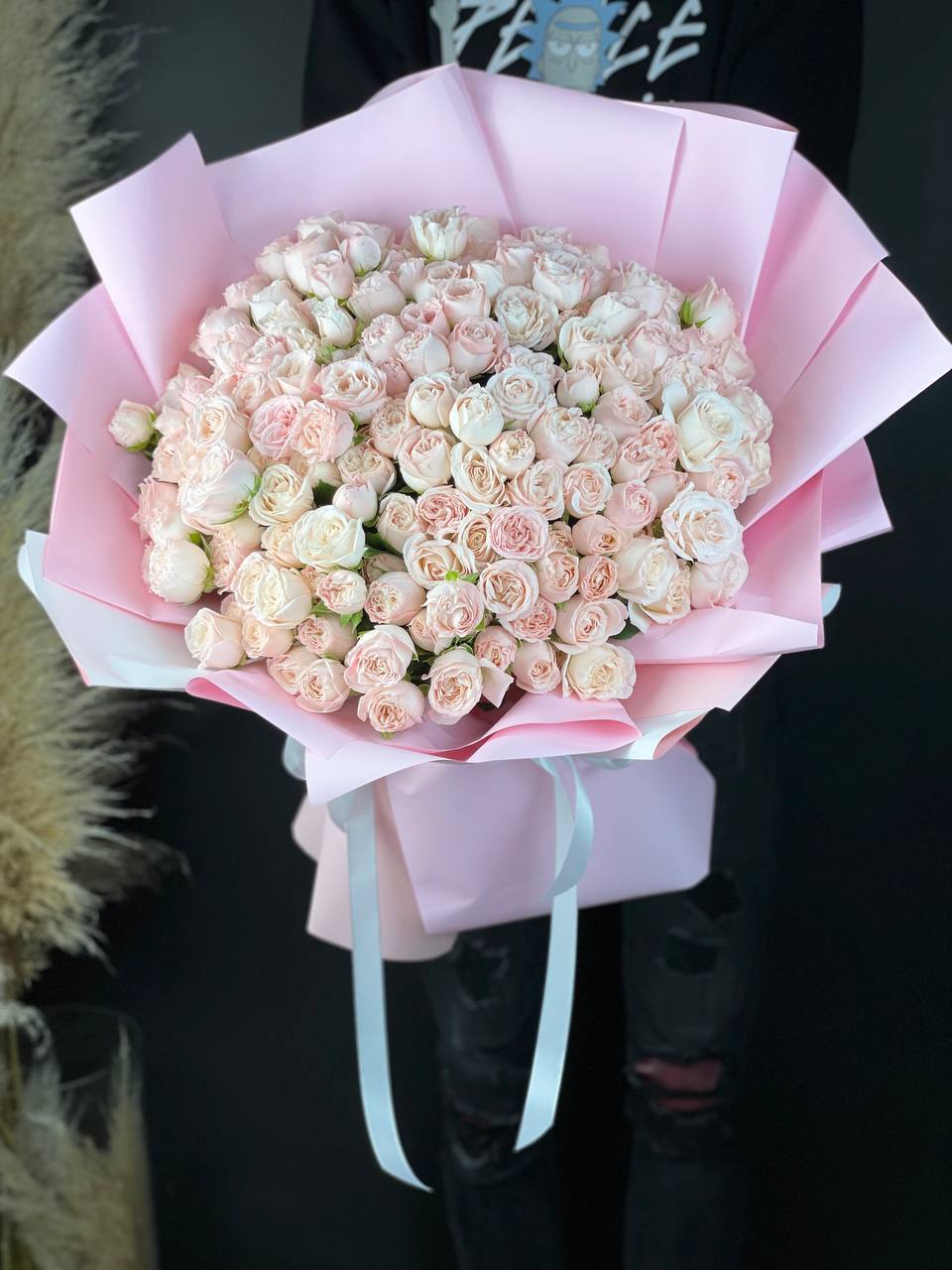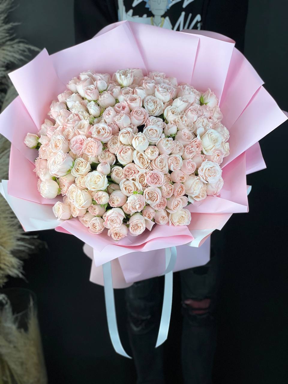 пионовидная кустовая роза Porcelain Lace/бомбастик - 15 шт., лента, авторская упаковка.