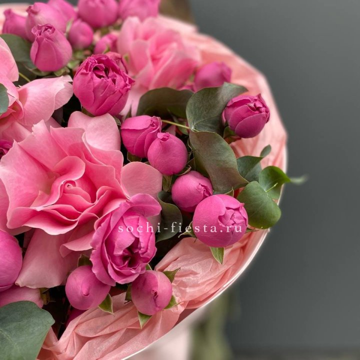 Зима и лето в Мурманске — розы и хризантемы как основа. Эти виды стабильны в поставках круглый год. Флорист дополняет их сезонными акцентами: хвойные ветви зимой, открытая эустома летом. Сборный букет в любое время года выглядит живым и актуальным.