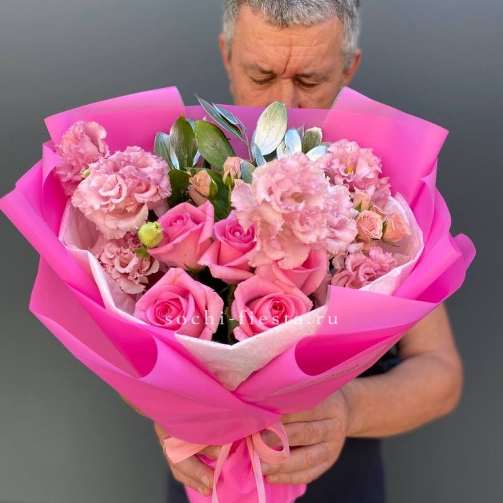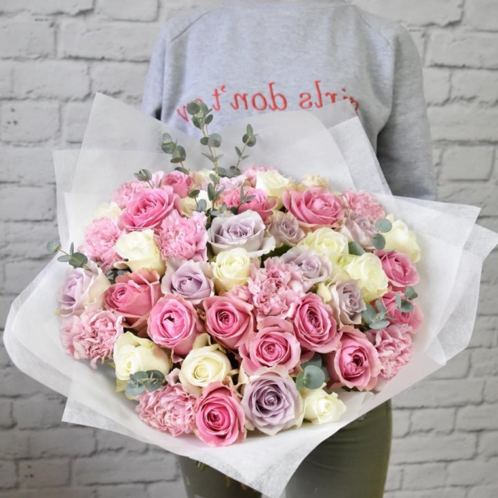 Зима и лето в Мурманске — розы и хризантемы как основа. Эти виды стабильны в поставках круглый год. Флорист дополняет их сезонными акцентами: хвойные ветви зимой, открытая эустома летом. Сборный букет в любое время года выглядит живым и актуальным.