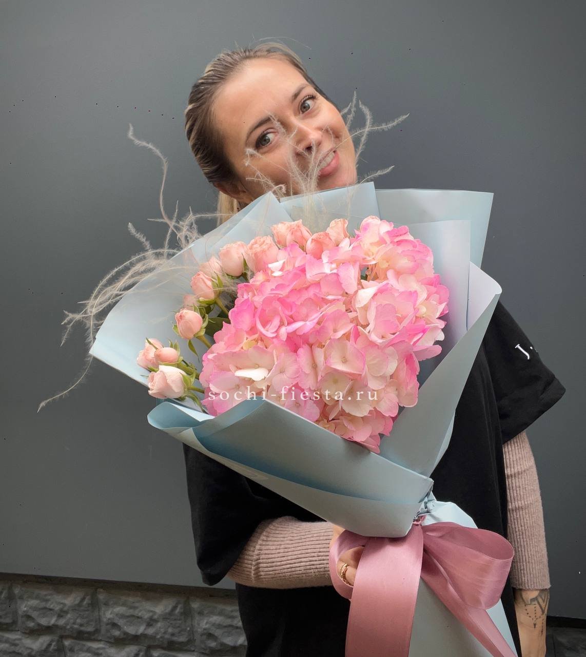 Букет гортензии и роз