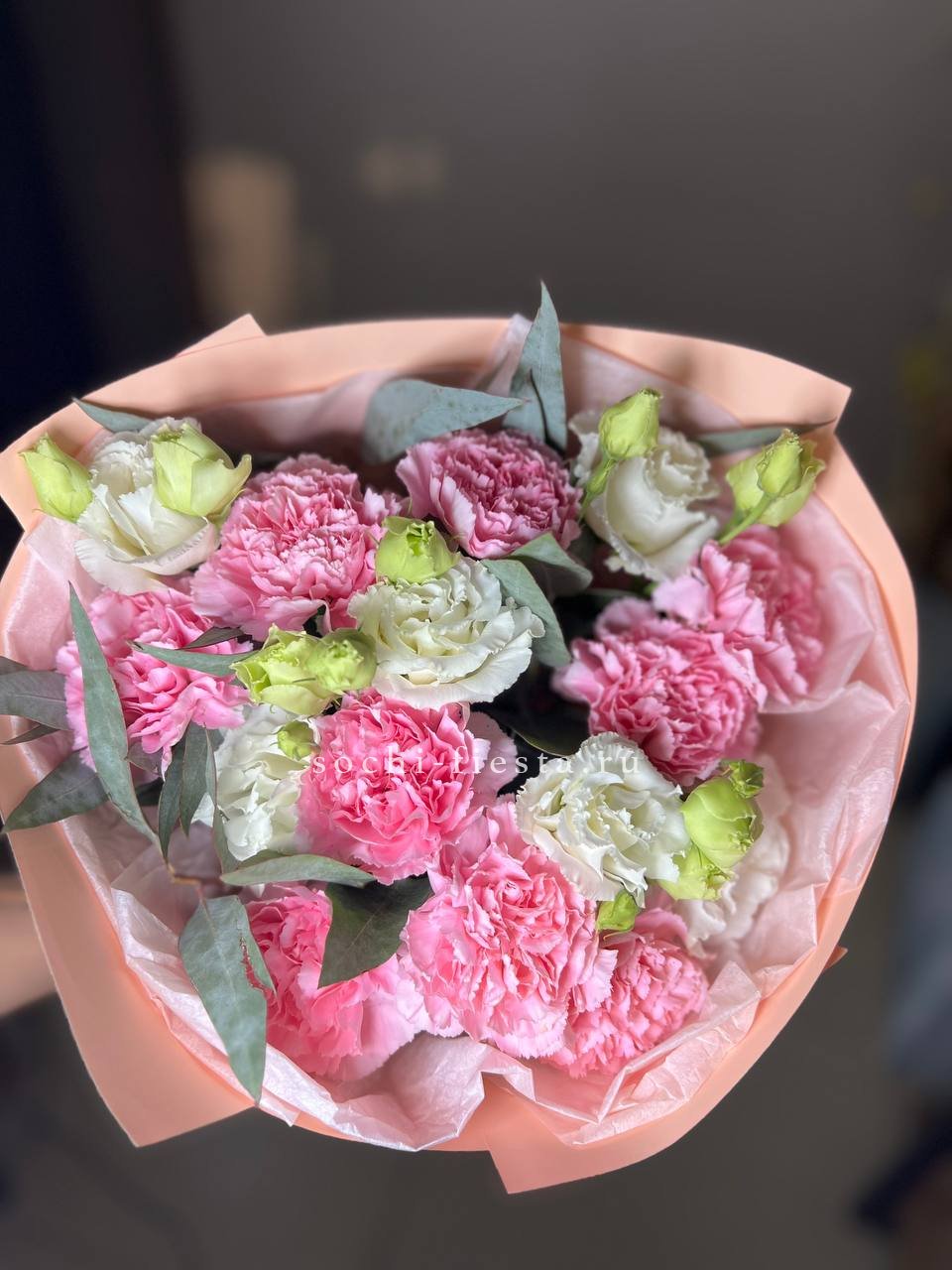 Для заказа товара "Букет гвоздик и эустом "Сири"" с доставкой в Мурманске нажмите в корзину