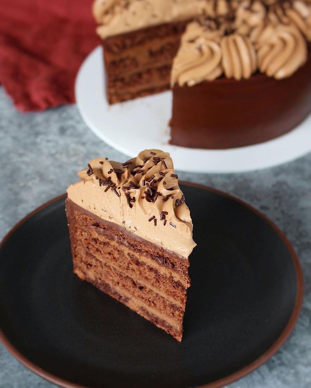 Яркий алый бисквит и белоснежный крем формируют выразительную пару оттенков. Красный бархат притягивает взгляд своей сочной палитрой и обещает знакомый вкус с первого кусочка.